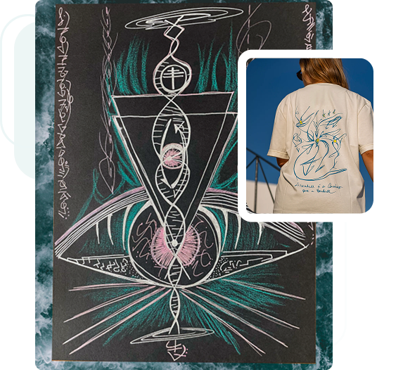 The sentences you see on this collection's t-shirts were created by the youth and the drawings around them are energetic patterns meant to activate specific aspects of the wearer's energy field.